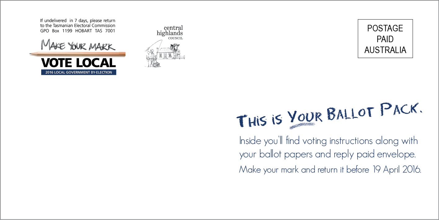 This means there is a 'polling period', rather than one polling day as for state Parliamentary elections. Every elector will be sent their very own postal ballot pack at their postal address. You then have around 2 weeks to complete and post your vote back to the returning officer. In 2016 the Central Highland by-election polling period is between Tuesday 5 April to 10am Tuesday 19 April.